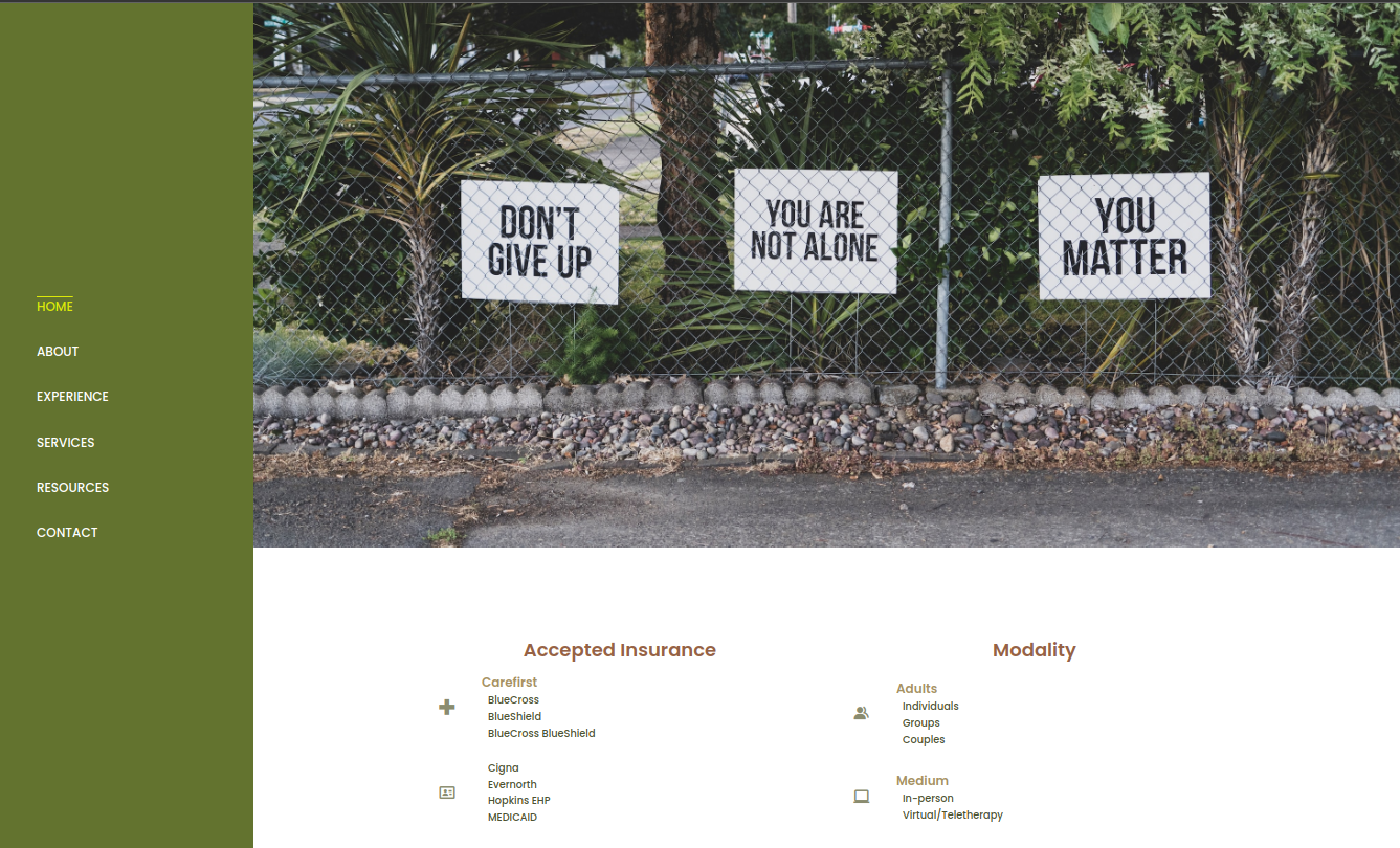 As a dual-purpose platform, savannaltenor.me serves as professional showcase for a mental health therapist and a comprehensive guide for those seeking mental health resources. Highlighting essential tools such as suicide prevention and domestic abuse hotlines, the site pays particular attention to providing resources for Baltimore City residents.